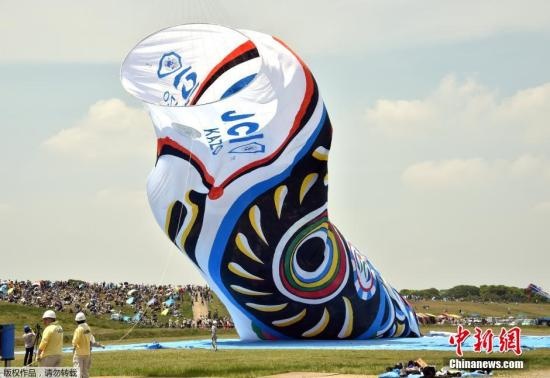 在日本埼玉縣加須市,人們將一個長100米、重330公斤的鯉魚旗用起重機懸掛在空中。在男孩節(jié)前后,日本各地有掛鯉魚旗的風俗,意在為孩子健康成長和出人頭地祈福,但同時也需要注意起重機安全監(jiān)控系統(tǒng)的使用,以免出現(xiàn)狀況,造成不良的影響