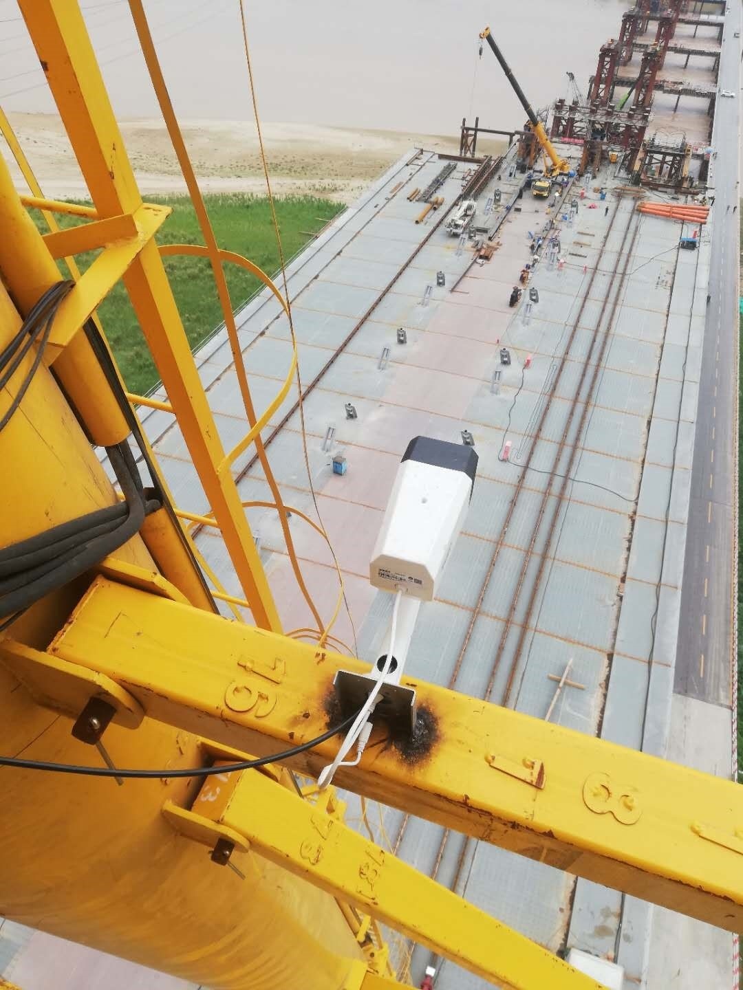 3. 龍門吊高度53米,跨度32米,為齊魯黃河大橋施工主要裝備,設(shè)備架設(shè)在黃河橋上,設(shè)備最高處距離黃河水面近80米,設(shè)備安全運(yùn)行,對項(xiàng)目進(jìn)度起到至關(guān)重要的作用,鄭州愷德爾遠(yuǎn)程監(jiān)控系統(tǒng)的安裝,為該設(shè)備正常運(yùn)行提供了可靠保障。